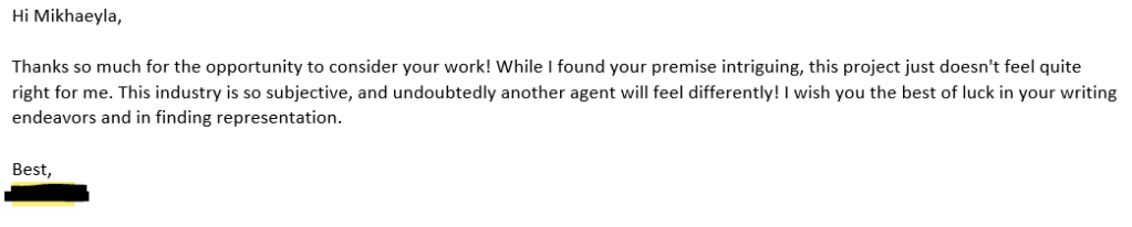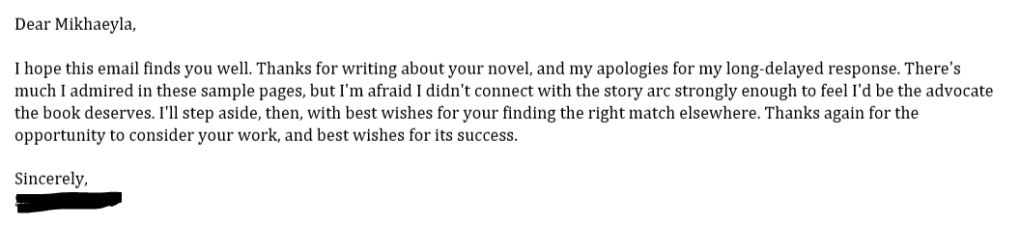 But, that’s fine. Agents are busy people. And maybe it was best not to risk it. So, I didn’t go ahead with the short story and just kept biding my time (i.e. editing Revolution). (I later found out this agent was going through some personal issues at the time, which made sense regarding the silence).