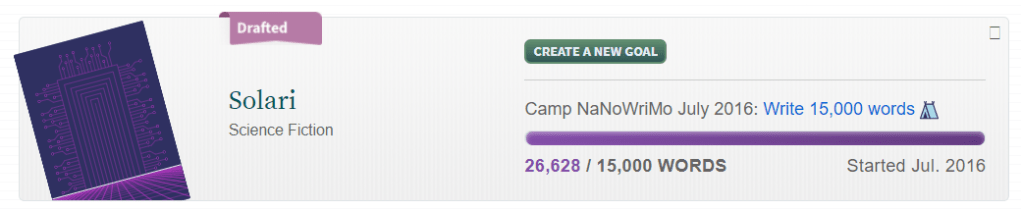 I signed up to Camp Nano with the idea of writing 15k words, but ended up with close to 27k words – the most I had ever written in a month, ever. (It helped that I was on maternity leave and had a newborn that slept a lot).