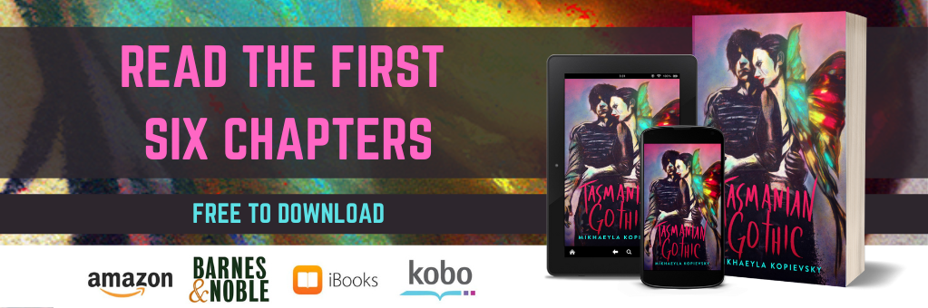 Where we have somewhat unnatural things (hybrid, mutated, metamorphosed), behaving somewhat unnaturally (due to their unnatural nature), for benign or aggressive purposes, we enter the realm of weird fiction. Weird fiction, unlike the other genres/modes/tropes we’ve covered, is unsettling not from its horror (known or knowable menace) or its terror (unknown and inexplicable menace), but from its grotesquerie. Because of that, it’s easier to dwell in the intellectual discourse of weird fiction because we’re not overwhelmed by the physiological horror or terror. Weird fiction is an incredibly interesting mode of fiction — one that is found in my own Tasmanian Gothic and one that I will explore further in my next post.